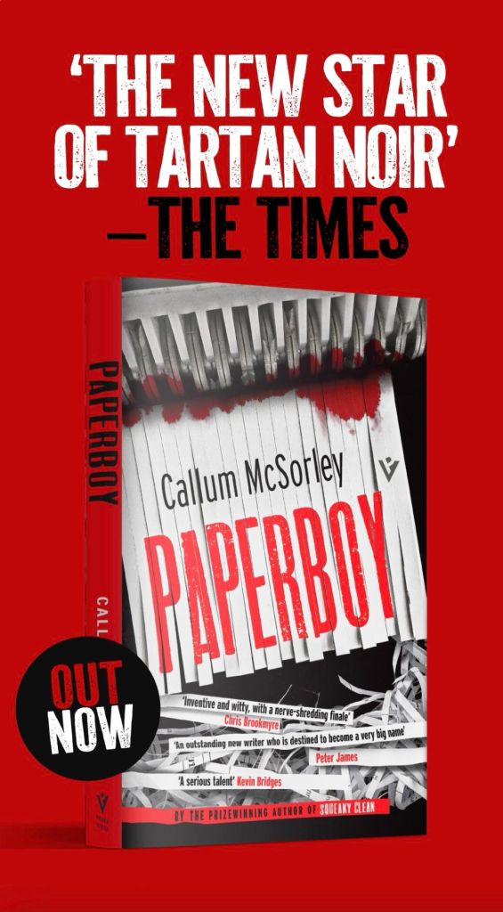 Already, Paperboy has garnered some acclaim from authors (“Energetic, inventive and witty, laying on the tension as it builds to a nerve-shredding finale” — Chris Brookmyre / “The most fun you can have at a crime scene” — Alan Bissett) and was chosen as The Times Crime Book of the Month for March (“A brilliant black comedy that repeatedly makes you squirm”) so I’m really looking forward to seeing what readers think of it.